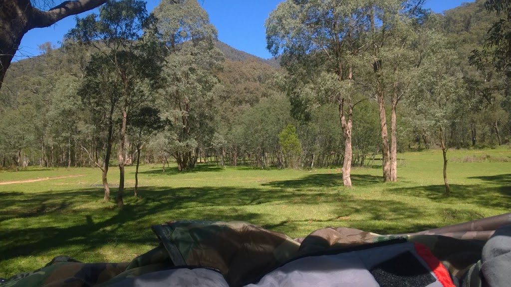 The turn off to this site is at Porepunkah (73.5km from Wangaratta on the Great Alpine Road). The access point (or parking) is a further 20.2km south-west of Porepunkah, along the Buckland Valley Road. Camping is permitted, there are fireplaces and a toilet.