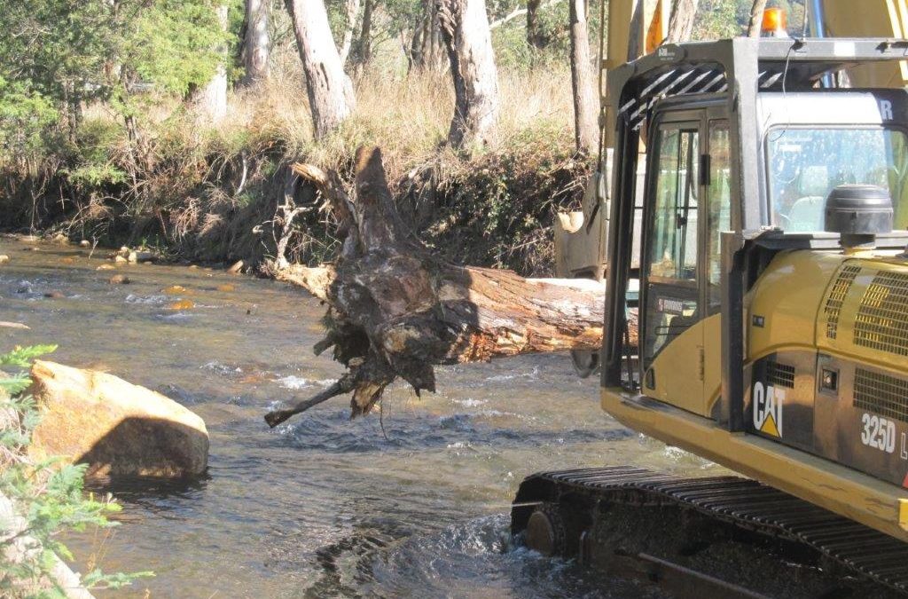 A habitat restoration project was completed in 2014 on a stretch of the Ovens River at “Frosty Corner”. This involved placing large boulders and timber into the river to create depth and variability in the stream flow in an area previously degraded by mining and flooding. Access is about 4 km before (north of) Harrietville on the Great Alpine Road. Vehicle access may require 4WD to cross a ford, but foot access is easy and level.