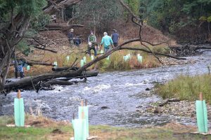 VRFish, ATF and GBCMA organised a Riparian Restoration project for tree planting along the Steavenson River in Marysville, Victoria with approval from the local landowner who agreed with fencing off part of the river and approving the planting of 160 trees to provide shade for the River. On the 5th May 2018 ~ 60 volunteers came out to plant the tree’s in about 2 hours, along with serving of morning tea and lunch.